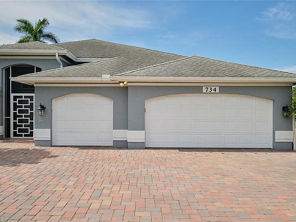 NO FLOOD ZONE! Now offered with an IMPROVED PRICE, this custom-built **SOLAR** ARTHUR RUTENBERG ESTATE HOME blends timeless design with smart updates. Featuring 4 bedrooms and 3 full baths in a double split floor plan, it provides privacy for family and guests while offering open gathering spaces for everyday living. The newly renovated kitchen sets the tone with contemporary finishes—sleek granite counters, matching backsplash, upgraded appliances, and an expansive barn-door style pantry. Throughout the main living areas, new waterproof luxury vinyl floors add both durability and style. Step outside to the caged pool, perfectly positioned with tranquil views backing to the former golf course. The pavered driveway creates a sophisticated welcome and leads to a 3-car garage plus large outbuilding, ideal for storage or hobbies. Practical upgrades include a new 2024 A/C for year-round comfort and ACCORDION HURRICANE SHUTTERS for quick storm protection and a WHOLE HOME GENERATOR. This home is also eco-smart, with solar panels that slashed the August power bill to just $0.97 (see documents). Combined with city water and sewer, the home is efficient and reliable. The location is another highlight—close to schools, shopping, dining, medical facilities, and I-75 for easy drives to Fort Myers, Estero, Bonita, and Naples