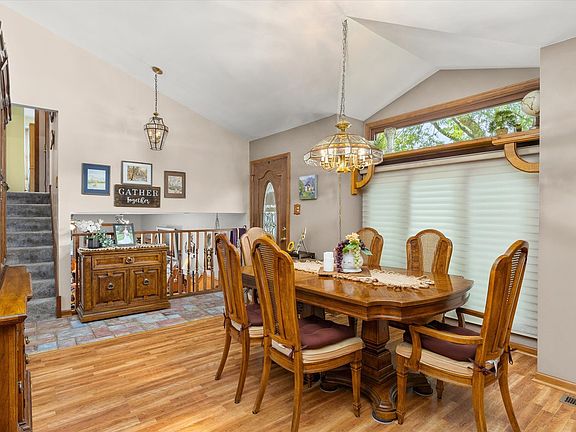 Welcome to this beautifully maintained home with a wealth of impressive features that make it a true standout. Main floor features dining room, living room and kitchen. Living room has cathedral ceilings and a shuffle board table that will stay with the home. Lights above the shuffle table are powered thru Alexa. Kitchen features granite counters and backsplash with bamboo floor insert. All appliances included. Refrigerator 2023, Stove and microwave 2018. The second floor has three generously sized bedrooms and a full bathroom shared with the primary bedroom. Lower level has family room with fireplace, full bath and laundry/utility room. Washer and dryer included. Family room TV with surround sound will also stay. The basement is fully finished with sump pump and Ace in the hole battery back up. The basement has been waterproofed by US waterproofing with warranty. Pool table, bowling game, gas fireplace and bar stay with the home. But wait there's more! Step into the private backyard with spacious 33x24 deck with pergola and 16x22 patio. Don't forget the intricate custom train set including trains and houses. The 10x12 shed has electric. One additional plastic shed and two deck boxes. The oversized two car garage has 20 amp service on the east wall outlets, heated with a natural gas thermostat, portable air conditioner and work benches. Extra wide driveway added in 2022. Side driveway is gated with gravel pad. Home has 200 amp service with Generac generator. Drain tile has been installed around the home. Attic fan with auto fan set at 90 degrees. Water boss water softener. Furnace & A/C are 5 years old with humidifier that have been maintained annually. Water heater 2020. Audio & visual equipment present. This home offers a perfect blend of functionality, comfort, and entertainment options, making it a must-see. Schedule a tour and experience all that this exceptional property has to offer!