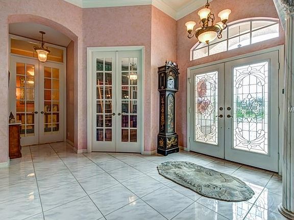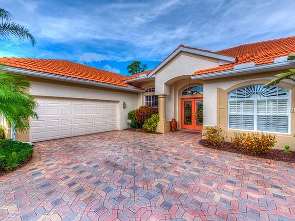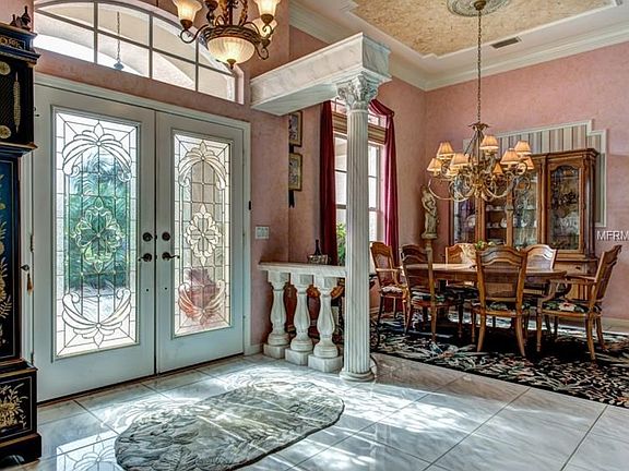 Enjoy the best of Florida living in this CUSTOM built pool home. Great curb appeal with the side entry garage, paver driveway and lush tropical landscaping. You will love the leaded glass double entry doors that welcome you into the formal living room with 12'ceilings, deep crown molding, architectural details and faux painting. The formal dining room is accented with a fabulous crystal chandelier. Walls of sliding glass doors lead to the screen enclosed lanai with tile flooring and inviting pool with travertine deck. Enjoy expansive views of the golf course as you relax by the pool! The large kitchen is perfectly laid out for entertaining with a breakfast bar and center island, whitewash wood cabinets and granite and Corian counters. The spacious family room has custom lighted built -ins and sliding doors to the pool area. The office space will make you happy to go to work with its' double French doors and custom built-ins! The Master suite is beautiful - faux painting accents the tray ceiling and you will love the double walk-in closets and master bathroom with large soaking tub, separate walk-in shower, dual sinks and water closet.The seller is providing a one year home warranty for the lucky new owner! Don't miss this gorgeous home!