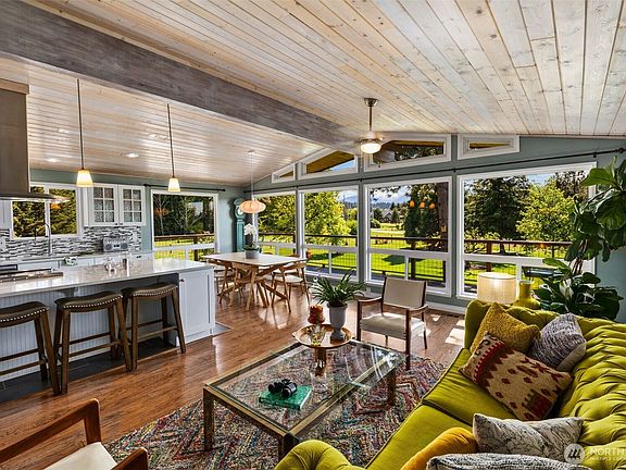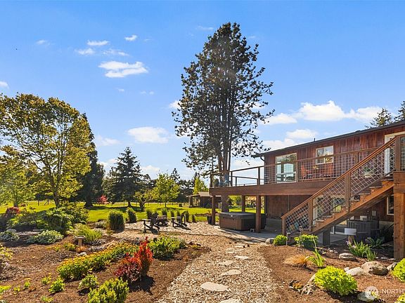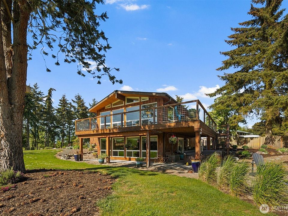 Welcome to Eagle's View, a bespoke Pacific Northwest manse set on 3 acres by the sapphire waters of the Strait of Juan de Fuca. Here, in WA’s sun belt, majestic eagles soar overhead, reflecting the property's beauty and strength. Enjoy natural woods and stone materials throughout, and an open, light-filled floor plan featuring two dramatic walls of windows. An expansive deck offers space to relax and entertain with Olympic Mountain views. Two primary bedrooms provide luxurious comfort: one with a dressing room and bath, another with a built-in stone desk and office area. Enjoy a greenhouse, storage shed, chicken coop, veggie garden and potential horse paddock. Let this boutique estate inspire a life filled with nature and sun-kissed beauty.