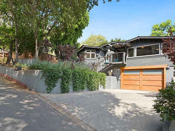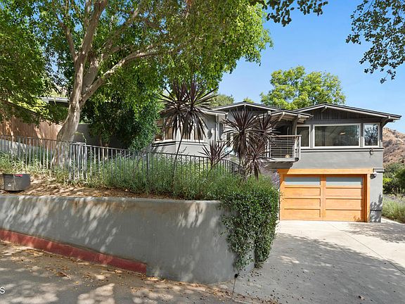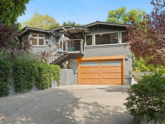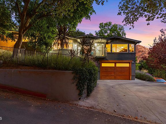 Welcome to 734 Skyland--prepare to be wowed by this rare artistic sanctuary! This one-of-a-kind retreat is brimming with character and charm. Hand-crafted details accent the walls throughout, creating a truly unique atmosphere. The living room showcases city lights and treetop views through expansive wall-to-wall windows and features a wood-burning fireplace, along with custom detailing that enhances the artistic vibe. The spacious, updated kitchen boasts new appliances, a large breakfast counter with seating for five, and opens to a recently added family room. This inviting space includes a mesmerizing water-vapor fireplace, views of the pool and spa, direct access to the backyard and a breathtaking mountain view.The primary suite is tucked away on the lower level with private access to the side yard, while two additional bedrooms sit on the main level, one of which opens directly to the backyard pool area. Step outside to your own private backyard resort with an inviting infinity pool and spa as well as a grassy play area for kids. A truly rare and distinctive feature is the dedicated space with an Airstream trailer (negotiable). The fully fenced yard includes two mature Mexican lime trees, a newly planted rose garden and lemon tree. Notable upgrades include: new roof in 2021, new underground drip sprinkler system, new sewer line in 2021, tankless water heater, central air & heat, parking for four cars in the driveway plus a two-car garage. You're only one offer away....