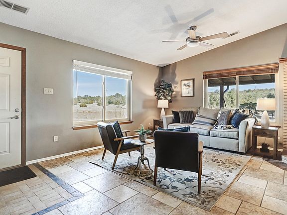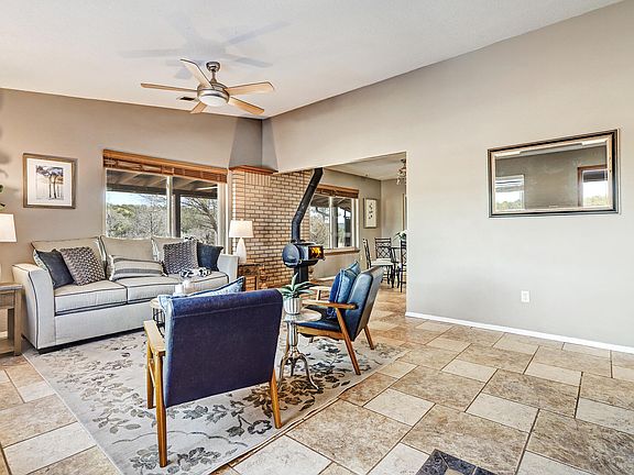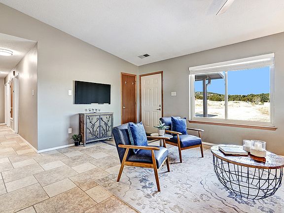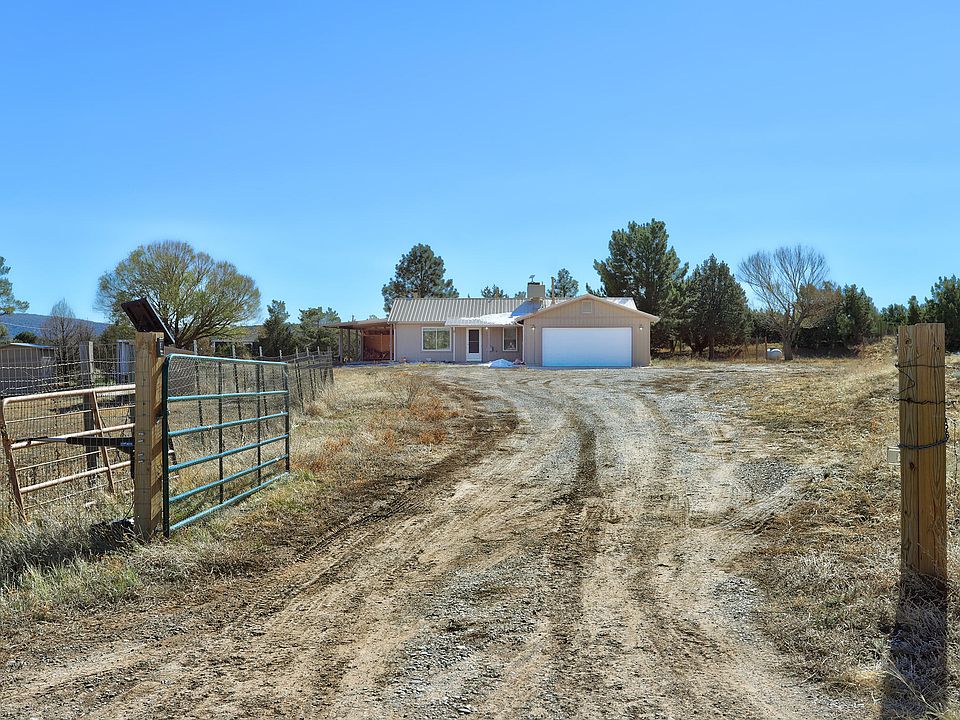 Welcome to your tranquil east mountain retreat discovered on 2.3 wooded acres, complete with 2-stall equestrian facilities! Live the quiet country life with great access to I-40 for inner city commuters. This treasure is loaded with wonderful features including: privately fenced / gated, ample parking and space for all the toys, durable newer pitched metal roof (2021), energy-saving thermal windows, skylights to bring in cheerful natural daytime light, cozy wood burning fireplace to stay warm and save energy on cold winter days, sensible all-tile floors or concrete in sunroom, 2 living areas including the enormous 32x10 heated sunroom, and ample outdoor living spaces under 2 covered patios. The horse facilities includes the small barn and separate storage shed. A MUST SEE NOW PROPERTY!