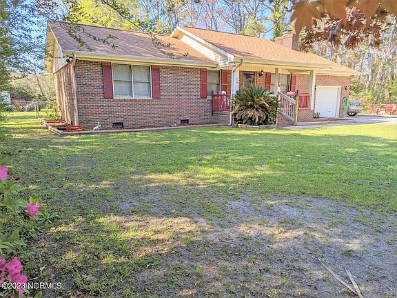 A country-like setting but just a couple of miles to downtown Calabash and minutes to the soft sand of Sunset Beach. Palm trees and flowering Azalea bushes all around the perimeter gives privacy. Onsite well is used to water the greenery. The fenced back yard is great for your pets to romp around and there's a storage building to keep yard equipment. Relax on the rocking chair front porch in the Spring, cozy around the fire pit in the Fall or enjoy the summer cookouts on the extended back deck just off the sunroom. There's an oversized one-car garage with additional parking pad. Inside you'll see the spacious kitchen, dining and living area that flows into the sunroom. Both bathrooms were remodeled and the two large bedrooms are very accommodating. This easy to care for brick home is at an affordable price so don't wait too long.