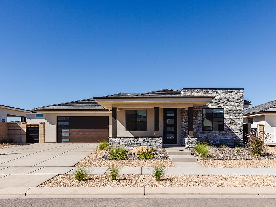 Step inside this brand new home to be greeted by an expanse of contemporary design, featuring 3 bedrooms, 2.5 bathrooms, and a dedicated office space. The open kitchen, living, and dining areas create a seamless flow for effortless entertaining and everyday living. Revel in the luxury of stainless steel appliances and a brand-new washer and dryer, adding a touch of convenience to your lifestyle. Relish in the serenity of your covered patio, perfect for alfresco dining and enjoying the Southern Utah sunsets. The fully fenced, xeriscaped yard provides a low-maintenance outdoor sanctuary, allowing you to spend more time reveling in the beauty of your surroundings. Experience the extraordinary with exclusive access to the one-of-a-kind lagoon, the crown jewel of Southern Utah. Dive into a world of relaxation with a pool, clubhouse, and pickleball courts. Enjoy a private school, a calendar full of parties, and a range of activities provided by the Desert Color Resort, ensuring endless entertainment for every member of the family. Buyer to verify all information provided.