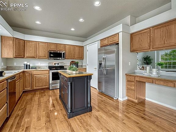 *Possible Seller Incentives* Tucked into the heart of Indigo Ranch at Stetson Ridge, 7340 Amberly Drive tells the story of a home that’s been cared for—and it shows. From the moment you step inside, you’re greeted by sunlight dancing across natural wood floors and a fresh palette of new paint that gives the home an inviting, refreshed feel. The main level flows effortlessly, with no carpet underfoot, and the updated lighting fixtures create a cozy, modern ambiance in every room. In the kitchen, a new island takes center stage—perfect for everything from breakfast to after-school snacks or room to prepare dinner for that special occasion. Stainless steel appliances, added in 2023, and warm cabinetry frame the space, making it a natural gathering point. Just beyond, the open living areas offer connection between spaces without losing the intimacy that families crave. Upstairs, the bedrooms are tucked away, offering quiet retreats. The carpets are newer, soft underfoot, and in fantastic shape. The spacious primary suite offers enough room to stretch out and recharge, while the additional bedrooms and bathrooms are ready for the rhythms of daily life. Step outside and you’ll find one of the home’s newest additions, a Trex deck, added in 2024, where evening dinners and summer gatherings come to life. The fenced backyard offers space for play and privacy, enhanced by a few thoughtful new landscaping touches that add just the right curb appeal. The roof was replaced in 2023 with Class IV shingles, giving peace of mind for years to come. With 5 bedrooms, 3.5 bathrooms, and a 2-car garage, there’s plenty of room to grow and gather. And with neighborhood parks, schools, shops, and Peterson and Schriever Space Force Bases just minutes away, this home is more than a place to live—it’s where your next chapter begins.