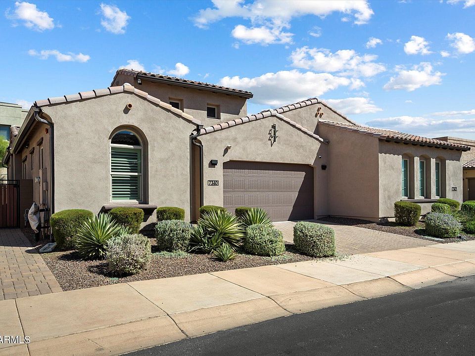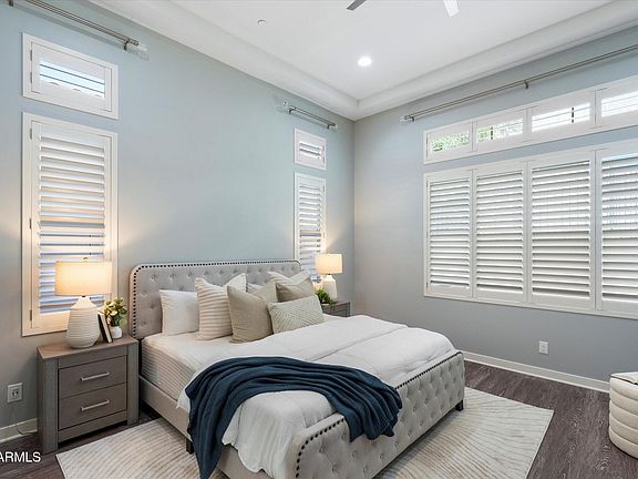 Beautifully appointed 3-bedroom, 2-bath home in the gated community of Summit at Silverstone in North Scottsdale. This open great room floor plan with soaring 15' ceilings showcases a stunning kitchen with white shaker cabinetry, granite countertops, stainless steel appliances, gas cooktop, wall ovens, walk-in pantry, and an oversized waterfall granite island perfect for entertaining. Recently installed commercial-grade cork flooring adds warmth, comfort, and durability naturally soft underfoot, sound-absorbing, and eco-friendly. Plantation shutters enhance the home's timeless style while filling the interior with natural light. The primary suite features dual sinks, a walk-in shower, and a generous walk-in closet. Modern upgrades throughout include a full-home water filtration system, Qolsys IQ smart home security system, electric window shades, new roof, new full exterior paint, and many more thoughtful improvements too numerous to listplease see the home improvement list for complete details.