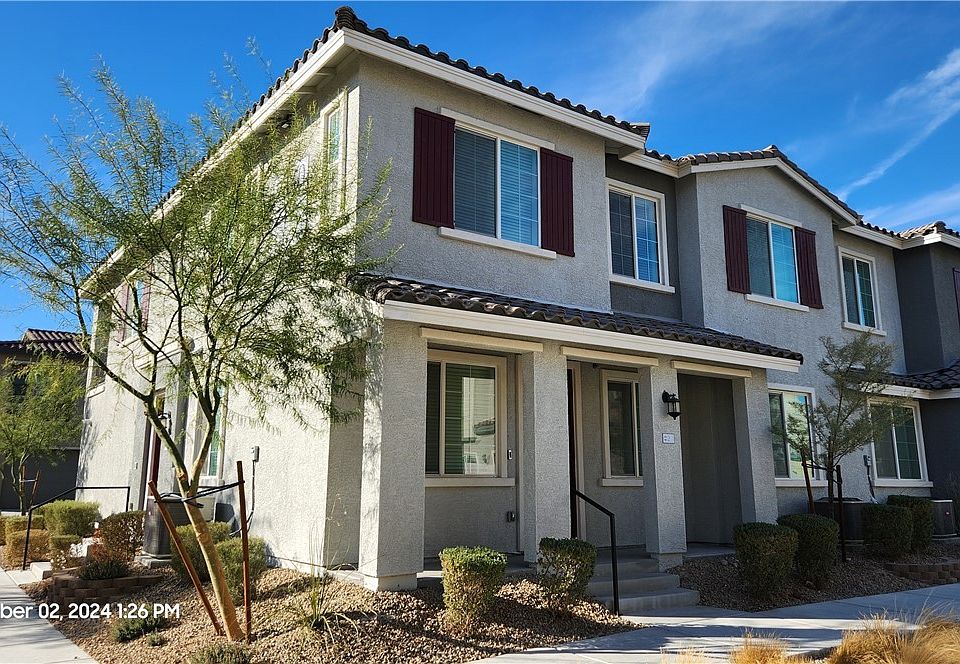 Welcome to a beautifully designed 3-bedroom, 2.5-bath townhouse with a flexible den that can easily convert into a 4th bedroom. Built in 2021 within the gated Roxbury community by Lennar, this home features an open-concept layout with modern finishes, stainless steel appliances, and plenty of natural light. Enjoy 9-foot ceilings, a spacious living area, and a well-appointed kitchen with abundant storage and counter space. The primary suite offers a walk-in closet and dual sinks. Residents enjoy access to walking trails, nearby Galaxy Park with basketball and pickleball courts, and pet-friendly areas. Conveniently located near shopping, restaurants, and top schools in the growing Valley Vista area. Move-in ready and perfect for families or investors seeking a modern, low-maintenance home in Northwest Las Vegas!