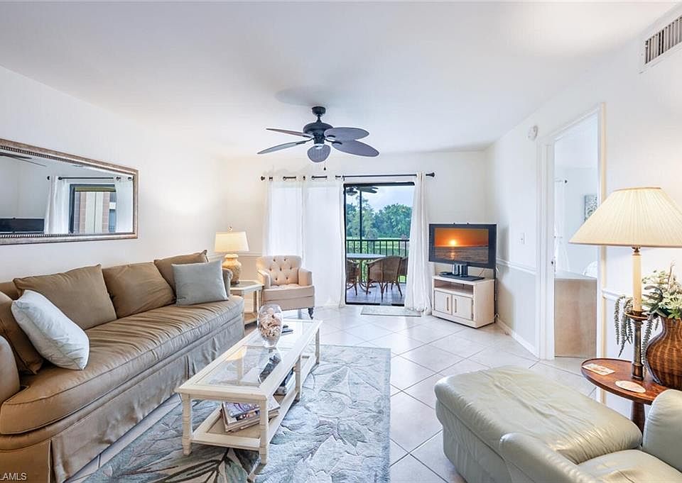 Here it is the one you've been waiting for a second floor end unit upgraded golfing condo you will simply love. Updated open concept kitchen sure to win over any Buyer. Contemporary design combined with tasteful decor makes this one the one to see! Tiled throughout living area. Imagine yourself with a happy hour on your screened in lanai and this breathtaking view overlooking water to the golf course. All of this in the newly refurbished Countryside Golf and Country Club Resort!Come see what everyone is talking about with the brand new resort style pool and the completely refurbished indoor and outdoor dining, clubhouse, an Arthur Hills golf course, driving range and putting green, fitness center with classes, tennis complex, pickleball. Countryside's 2025 renovations have won over the potential new Buyers in one of Naples friendliest golf resort communities. Close to the clubhouse and amenities. Fitness center in the morning, followed by a round of golf and perhaps the beach for the afternoon, Naples and Countryside offer it all. You've earned the Naples lifestyle, live it well in Countryside Golf and Country Club.