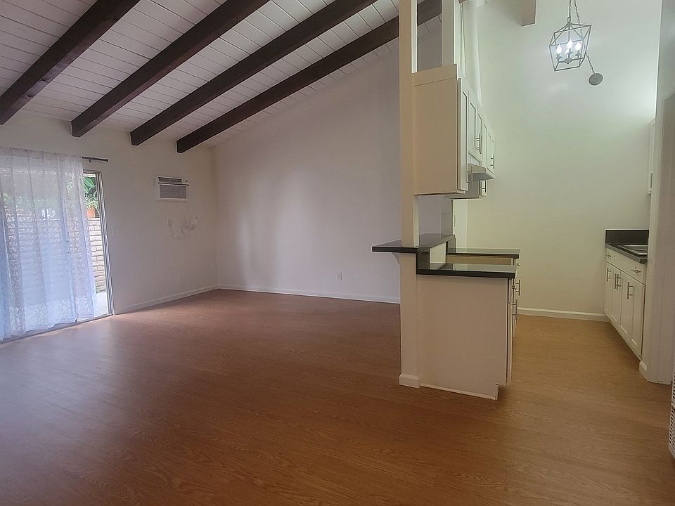 Step into a high vaulted ceiling 1-bedroom 1bath unit from a fenced in patio. Wooden ceilings accent the whole unit, newly upgraded interior, a/c in the living room and in the bedroom. A ceiling to floor closet in the bedroom allowing for plenty of storage space. Vinyl wood flooring throughout the unit.