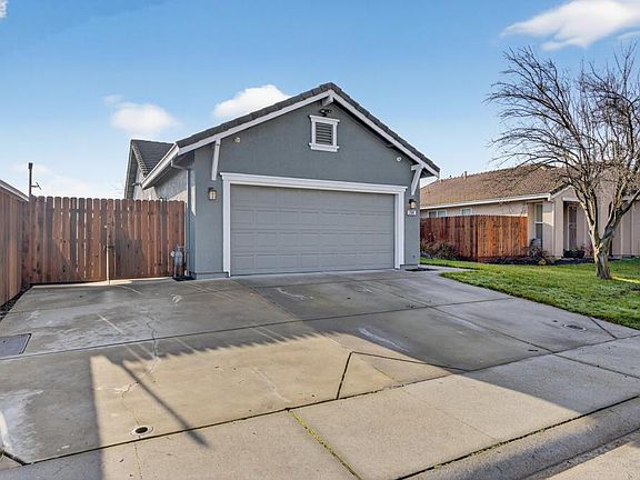 Inviting single-story home offering a flexible open-concept layout and a thoughtfully designed outdoor space. Inside, enjoy durable laminate flooring throughout the main living areas, neutral tones, recessed lighting, and abundant natural light. The kitchen features ample cabinetry, tile countertops, and a center island with bar seating, opening seamlessly to the living and dining areas - ideal for everyday comfort and entertaining. The living room is anchored by a cozy fireplace and sliding glass doors that extend the living space outdoors. The primary suite provides a private retreat with a walk-in closet and an ensuite bathroom featuring dual sinks and generous counter space. Additional bedrooms are well-sized and adaptable to a variety of needs. Bathrooms include updated fixtures and finishes. Step outside to a spacious backyard designed for both relaxation and function, complete with a large covered patio with pergola, garden areas, mature fruit trees, and storage sheds. The property also includes a chicken coop and side yard access suitable for RV or recreational vehicle parking. A finished two-car garage offers epoxy-style flooring, overhead storage, and excellent lighting. Conveniently located near the Sacramento River Trail, schools, parks, and commuter routes.