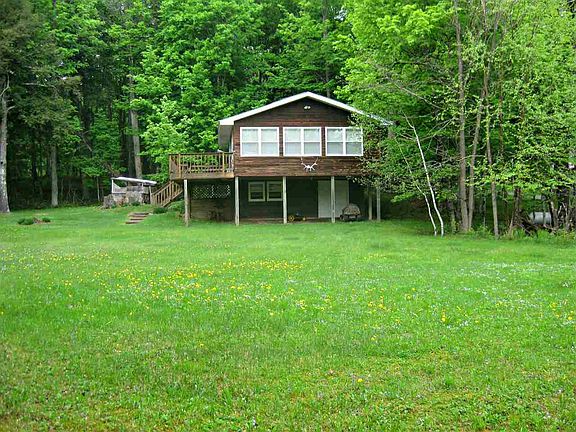 Cozy cottage with great access to sandy beach! Two bedrooms, 1 bath, walk out basement, with LP forced air furnace. Great view from enclosed sun porch and move in ready! Spacious living area with free standing wood fireplace! Large deck overlooking Patton Lake, a full use lake with plenty of fishing, boating and just sitting and relaxing with plenty of privacy. This is a must see!