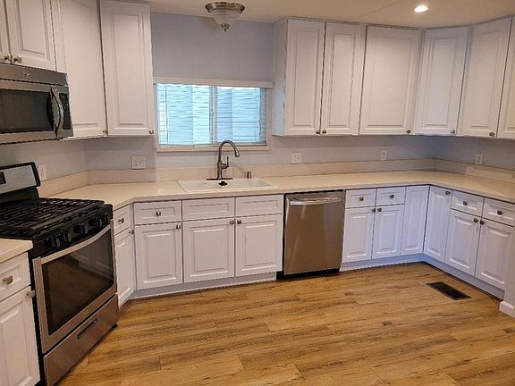 55+. Absolutely magnificent property!!! A completely panoramic Golf and mountain view!!! The sunny, bright home has been completely remodeled with quality upgrades plus finished walls. Quality laminate throughout, fans in each room, six panel doors plus many other upgrades. Kitchen has stainless steel appliances. There are 2 bedrooms plus den/office/hobby room. Outside the home has new siding. The low monthly HO Fee includes unlimited golf for two owners on two plush golf courses. You OWN the land !! The patio has a unique custom patio semi enclosure. Owner had custom, removable, individual frames with screening which helps keep the house cool and still enjoy the view.A beautiful lot with a view wide and long. Looking at the mountains, you can enjoy a beautiful sunset each day.The clubhouse has two pools and two spas plus restaurant and entertainment. There are various social clubs to join including painting and bridge. Tri Palms Estates and Country Club is close to Costco, Sams, Walmart and many stores. Plus hundreds of restaurants, various casinos and theaters, medical facilities and freeways.