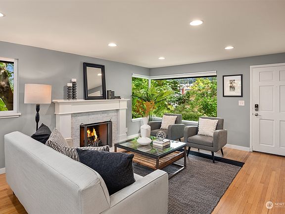 Crisp, comfortable and updated mid-century offers leafy outlooks, great ambience, and privacy in convenient Ravenna location. The spacious layout and open main living area features hardwoods, fireplace, and direct access to the deck and backyard. Thoughtful updates include AC, roof, fencing, and a beautifully remodeled primary bath. The north-end location is a short walk to schools and parks, a jaunt to U-Village, and an easy commute DT. Life’s good here, just unpack and enjoy. Additional information online at midcenturyravenna .