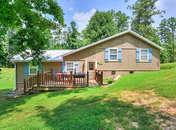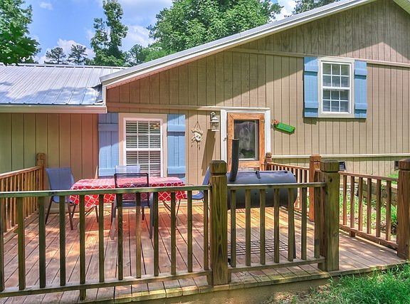 Adorable lakefront home! This 4 bedroom/2 bathroom home has hardwood floors throughout. The open floor plan features high ceilings, spacious living room and kitchen. The large, newly remolded, kitchen has custom cabinetry w/ granite counter tops & includes stainless steel appliances, Bosch dishwasher, built-in microwave w/vent hood, refrigerator/freezer, double under mount sink & electric stove top! Brand new, large hot water heater. Home includes a covered dock with swimming deck for Lake fun. Enjoy nature on the screened in/covered porch (18x15), or play & entertain guests in the large yard! Use the outdoor shower, with hot water, to refresh after a day of fun. Park vehicles under 2 detached carports. For storage, there is a large shed. This is perfect for a summer home on the lake or a great weekend getaway spot. It is a must see! Due to the lake front & great location, it won't last long. Make sure you schedule your personal tour today!