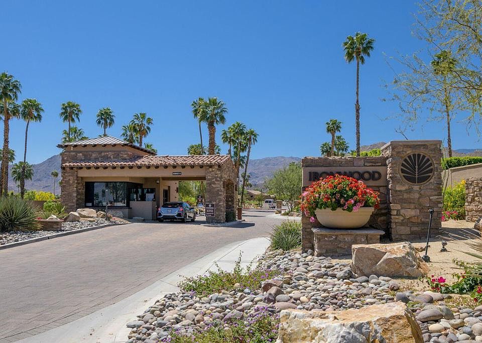 Looking for a weekend getaway, vacation property or an investment property? This could be the one for you. 24 hour guard gated security. Turnkey furnished, just bring your toothbrush. This unit is in a great location next to a large parklike greenbelt area. Off of the living room is a patio which overlooks the community pool/spa area. There is also a private patio off of the dining room area which would be great for entertaining or just relaxing.The large master bedroom suite has a walkin closet as well as another closet with sliding doors. There is a bathroom with a shower enclosure and vanity area. Off of the bedroom is an additional bonus area that could be used as sleeping area or office space. The dining room is adjacent to the living room area. There is a secondary bathroom off of the living room with a tub/shower and vanity area.Saltillo tile throughout. Charming, vintage style furnishings throughout. The single car garage has room for a golf cart or for additional storage. This unit had previously been used as an investment property. Close to the Living Desert and ElPaseo.Ironwood offers both golf and social memberships. Show and sell.