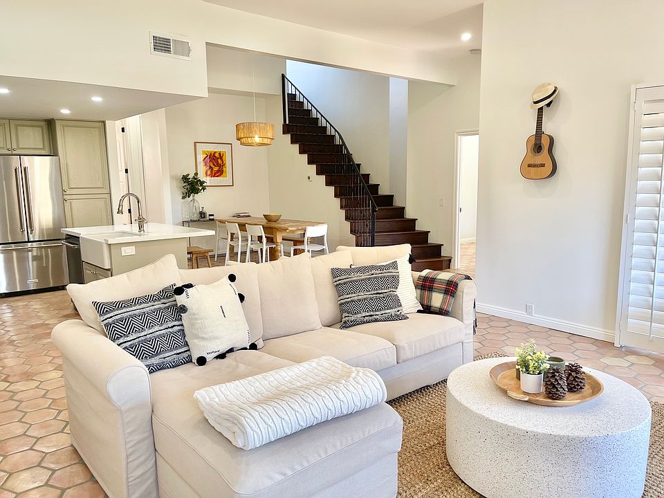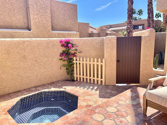 AVAILABLE NOW - MONTHLY FURNISHED RENTAL. This Ironwood County Club Villa has been completely reimagined showcasing a tasteful modern Spanish style. The condo has been completely redone top to bottom with new furnishings to match. Relax in the brand new in-ground spa in the private courtyard, or a meal on the private rooftop with stunning panoramic views of the surrounding mountains. Enjoy community pools and spas, serene surroundings, and guard-gated security. Located minutes from El Paseo. Ironwood Country Club is a private club. Available for a 5 month lease. Shorter term lease price is negotiable.