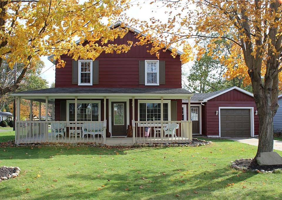 Charm inside and out with tons of updates! Great location, Fairview schools. Remodeled kitchen with new stainless refrigerator, gas range, microwave, ceramic flooring. New central AC. Newer windows, hot water tank, carpeting, basement support beam, asphalt driveway to detached garage. First floor laundry in breezeway. Huge master bedroom and walk-in closet. Addl bonus room in 1-car garage. Fresh paint. Wraparound front/side porch, covered rear patio. New septic drain lines, updated landscaping.