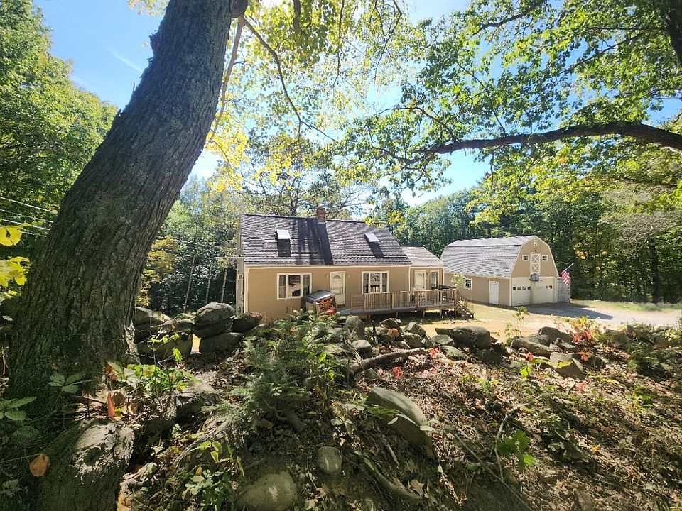 Tucked away on more than 5 acres, this Cape offers the best of country living while remaining close to I-89, I-93, and major routes for commuting ease. The sunroom, designed for year-round enjoyment, overlooks the wooded surroundings and provides a peaceful start to your mornings. Inside, you’ll find an updated kitchen with newer counters, flooring, and stylish cabinetry, flowing into a dining room with wide-plank hardwoods. A flexible first-floor room, laundry, and half bath complete the main level. Upstairs, the primary bedroom and two additional bedrooms share a full bath, while the walkout basement adds bonus space with its own ¾ bath for guests or hobbies. The detached garage/barn is a highlight—offering two-car parking, storage above, a workshop, and two small horse stalls on the back side. A rear garage door makes it simple to store equipment, ATVs, or outdoor gear. Step outside to enjoy nights by the firepit, or envision adding a pool to your private outdoor escape. A property with this much versatility, space, and character is a rare find. Showings begin at OPEN HOUSE Saturday September 27th 11-1pm. Interior photos will be uploaded by 9/24/25
