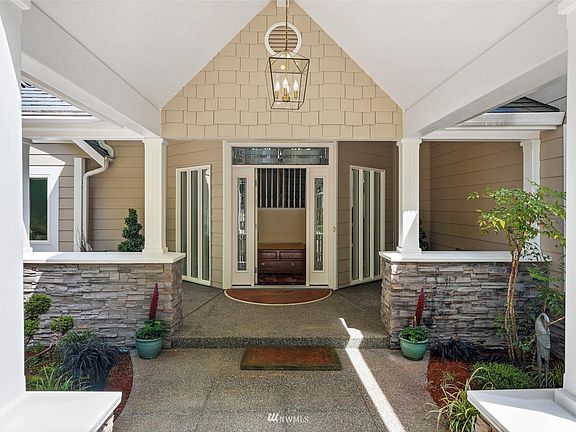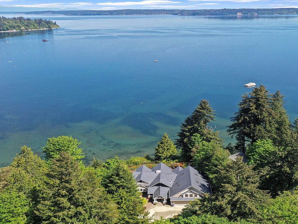 Rare opportunity to own a pristine custom home in a quiet waterfront community 10 min from the freeway. Sweeping views of Puget Sound. Main level has living & dining rooms, kitchen, 2 bdrms, 1.5 bath & office #1 (opens onto deck). A private staircase leads to the primary suite w 5 pc bth, WIC & balcony w majestic views. A separate staircase leads up to office #2, full bth, built-in theater, fireplace & balcony. 3+ garage w epoxy floor, utility sink & bth. Covered patio w sink, kitchen pass through window; roll-up, insulated security shutters; Lifetime Interlock metal shingled roof; landscaped gardens w access to private sandy beach, 100 bulkhead & firepit. Located on a cul-de-sac w a trail leading to Tolmie State Park. And so much more!