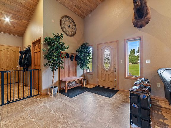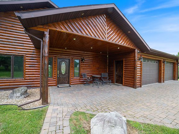 Country Living at Its Finest! Welcome to this stunning one-level ranch, built in 2007 perfectly situated on 59.25 acres of serene countryside that backs directly onto 1,070 acres of state land. This property is a rare find, offering privacy, space, and all the extras that make country living a dream. Step outside and enjoy the beautifully landscaped yard—perfect for entertaining! The backyard features a spacious patio with a built-in gas grill, bar, and gas fire pit. Plus, the hot tub can be included with the sale! A 2-stall attached garage, large pole building, and chicken coop complete the ideal homestead setup. Outdoor upgrades include a French drain system and three cleared acres with four food plots—a hunter's paradise! Inside, this home boasts 4 bedrooms, 2 bathrooms, and a wide-open layout with 15’ tongue-and-groove ceilings and hickory hardwood floors throughout. The main living room features a cozy corner gas fireplace and large windows that fill the space with natural light. The chef's kitchen includes a generous center island, maple cabinetry, granite countertops, and an oversized stainless steel refrigerator, making it both functional and stylish. A second living area, currently set up as a theater room, offers a wall of windows and a patio door leading to the backyard for easy indoor-outdoor flow. The spacious primary suite includes a walk-in closet, private full bathroom, and direct access to a private patio with a hot tub—your own retreat at home. This home is move-in ready and has everything you need for peaceful, luxurious country living. Don’t miss out—schedule your private showing today!