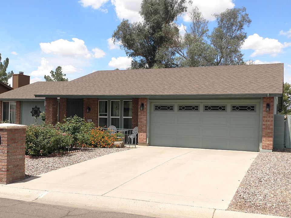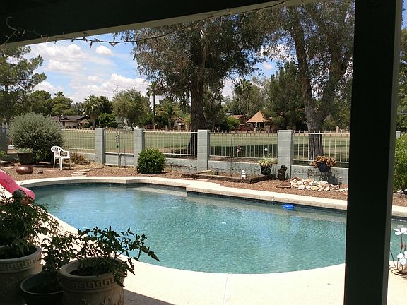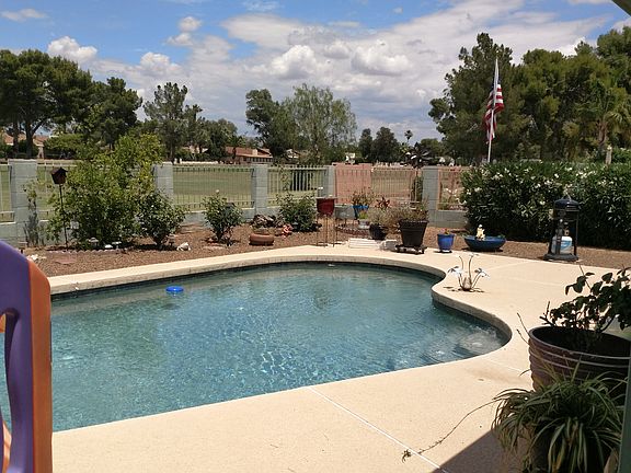 Delightful 3 bed, 2 bath home plus an office in Mesa with newer pool with pop up cleaning is now on the market! This golf course property features desert landscape, 2 car garage, and RV gate, north backyard with updated play pool, newer double pane Low E windows all around! Interior boasts vaulted ceilings, neutral paint, gorgeous travertine tile flooring in main areas, and tons of natural light. Lovely kitchen is equipped with matching appliances, pull out drawers, pendant lights,spacious cabinets, and pantry. Master bedroom has his & hers closets, sliding glass doors to back patio, and private bath. Huge backyard offers easy-to-care landscaping, a sparkling blue pool and an extended covered patio overlooking the Arizona Golf Resort course, mountain views to north and easr
