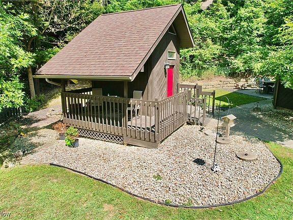Spacious bedroomsRecently re-stained balconySurrounded by woodsFire pitTwo shedsReverse floor planMaster suite
