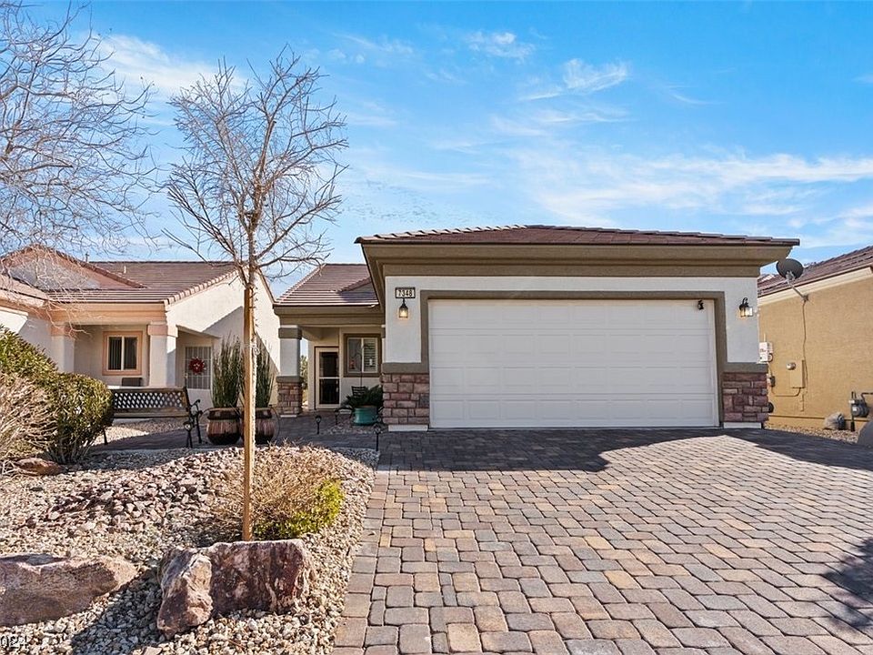 Lovely. well maintained 2 Bdrm located on golf course. Upgraded Brick Driveway invites you into this low maintence popular model. Hard surface flooring. Enjoy your morning coffee under the stucco covered patio. Close to schools, Aliante casino, shopping, freeway access & all amenities. Bedrooms well separated for privacy.