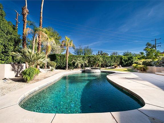One of the highlights of this property is the private back patio with pool and spa. Accessible through sliding glass doors from the living area, the patio is a private oasis perfect for outdoor living. It features a well-maintained, low-maintenance landscape that is quintessentially desert, with a mix of native plants and tasteful hardscaping. There’s ample space for lounging, dining, and enjoying the tranquil surroundings, with mountain views in the distance. Whether hosting a barbecue or relaxing with a book, the back patio serves as an ideal extension of the indoor living space, capturing the essence of desert living. At the center of this outdoor haven is a large, sparkling pool, beautifully integrated into the landscape. The pool is designed with clean lines, providing a modern aesthetic that complements the surrounding desert environment. Adjacent to the pool is a raised spa, ideal for soaking and unwinding while enjoying the serene surroundings. Both the pool and spa are surrounded by a beautifully crafted hardscape, featuring natural stone and concrete finishes that blend seamlessly with the desert landscape.