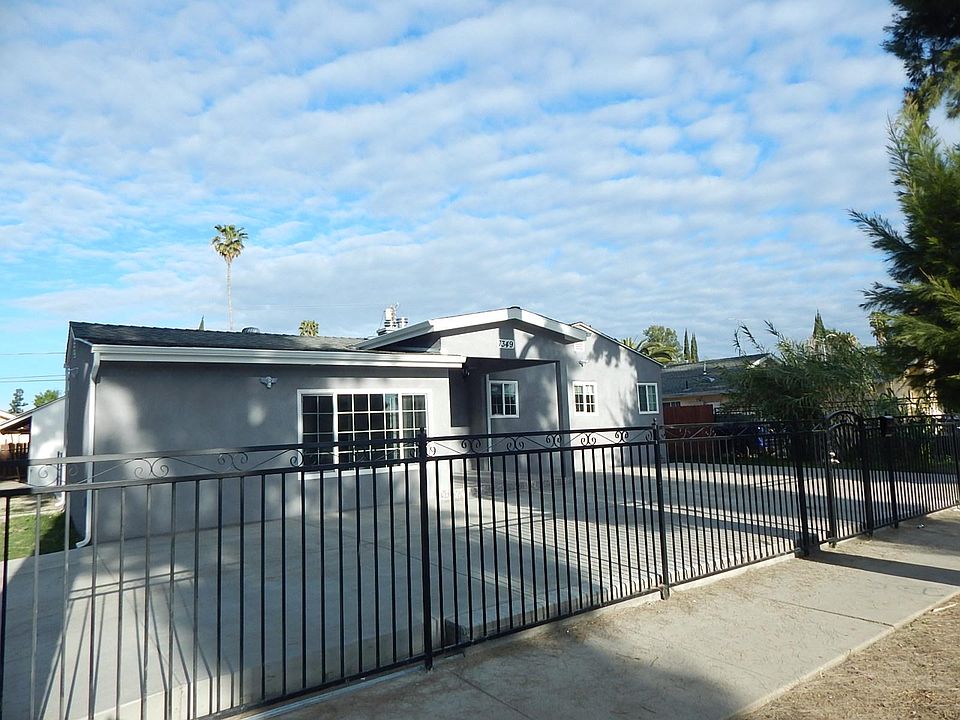 Just like a Brand New House. 2 Houses on property (This is the Front House). Completely Remodeled top to bottom. Brand New Everything. Property is gated, large parking area in front of house, fits up to 4 cars (no garage). Beutifully done brand new kitchen, baths and everything in between. Private yard in back of house fully paved with concrete as well as wood fenced large patio on side of house. There are 2 houses on property, Part of the driveway is shared with back house which will be rented seperately. Call agent to schedule a viewing. **No Pets Allowed**. Tenant pays all utilities