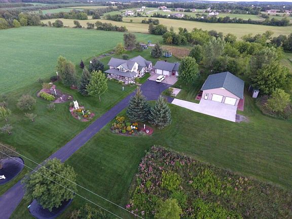 Unique home combining old world charm & contemporary construction. Elaborate woodwork & ceilings throughout, lg. country kitchen, formal DR, abundant living space, elegant office, heated 3 car garage & workshop, matching frame-built 36'x48' outbuilding, all nestled in a park-like setting on 5 acres. Located 5 miles from town, this family home is perfect for people who love the solitude of the countryside, but don't want a long commute. Addn'l 5 acres available.