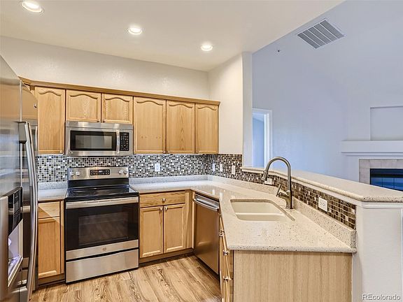 This beautiful penthouse condo offers two spacious bedrooms and two bathrooms, perfect for comfortable living. Step inside and enjoy the open and airy feel of vaulted ceilings and lovely luxury vinyl plank floors throughout. The kitchen features gorgeous quartz countertops, complemented by a stylish tiled backsplash, under cabinet lighting and stainless-steel appliances - perfect for whipping up your favorite meals. The granite counters in both bathrooms add a touch of elegance that is sure to impress. The spacious primary bedroom offers a generously sized walk-in closet, a linen closet, both bottom up and top down window coverings plus amazing mountain views. The living room features a gas fireplace and sliding door to the private deck overlooking open space and with stunning mountain views as well. There is also laundry in the unit with a 1 year old washer and dryer. As an added bonus, you'll also have a reserved covered carport, offering protection from the elements. Nestled in a great location that's close to shopping and C-470. You also get all of the amenities of the Ken Caryl Ranch community including use of the pools, clubhouses and tennis courts. Brand new water heater too! Don't miss out on the chance to make this charming condo your own.