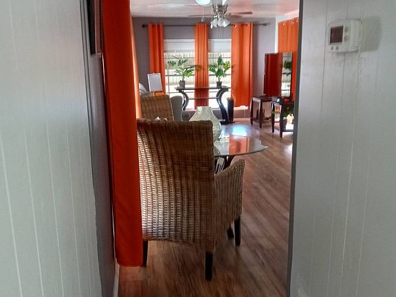 This is a very nice and beautifully furnished 1 bedroom, 1 bath single wide mobile home in a nice 55 plus community. A 40 yr + can live here with a 55 and older. Indoor cats are welcome. Lot rent is $880.00, includes water, sewage, trash & lawn. Newer updated floors, appliances, stainless steel, kitchen, new updated bathroom with a large enclosed-window Florida room which can be used as an extra bedroom, etc. with a window ac. Newer central air, roof over, washer & dryer inside bathroom, very nice and new, well-kept and maintained. Large, covered carport and parking space, 2 sheds for storage. Close to bus stops, shopping centers, highways, dr. offices, churches and beaches!!! Just minutes away. Move in ready, all you need is your toothbrush! Heated pool, clubhouse, gym, rec room, library, crafts, bingo, shuffleboard, corn hole, dances, and all kinds of activities. Parking for boat or RV or trailer for owne3rs if available. Must have a background & credit check and be park approved, motorcycles welcome. Very centrally located. All listing information is sai8dd to be accurate and true but not guaranteed and should be independently verified by licensed professionals. CJ Mobile Home Sales, LLC does not guarantee or warrant the accuracy of this information, measurements, or condition of any property.