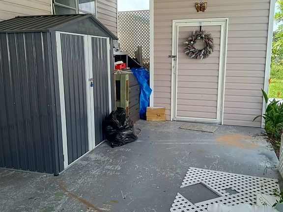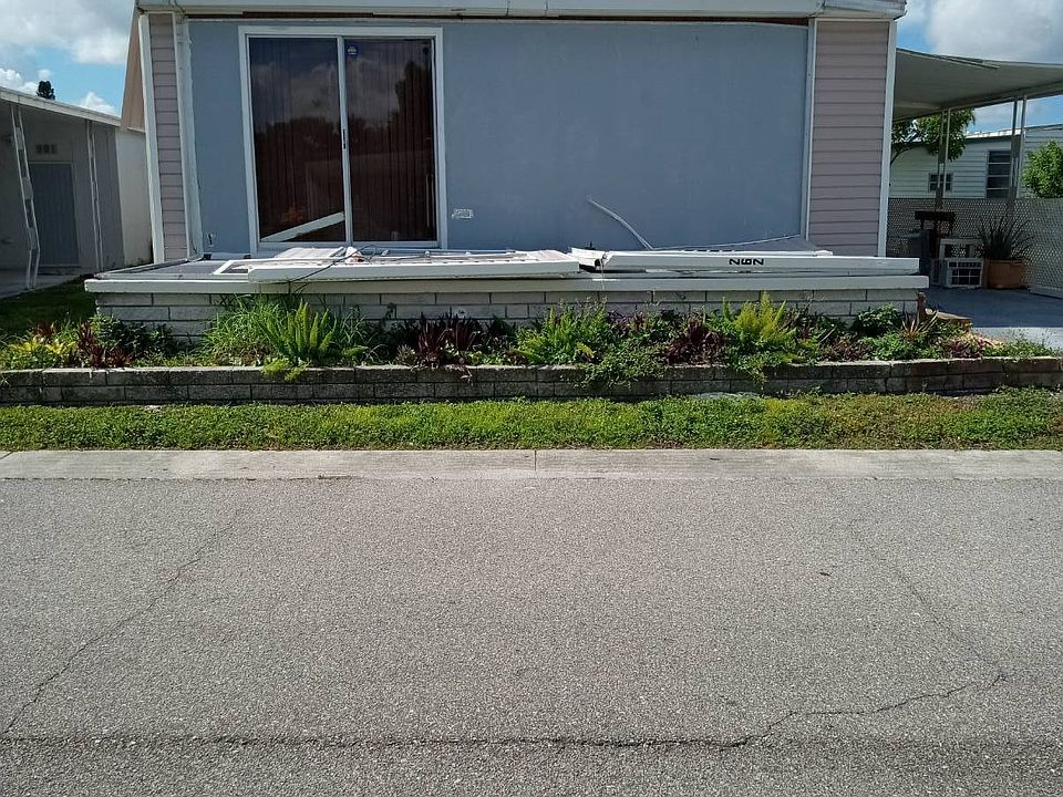 Beautiful updated 2 bedroom 1 1/2 bath doublewide mobile home. The park was hit by a tornado about 6 weeks ago and the front Florida room was knocked down. The city has said they were going to try to help people in the park who was hit but nothing has happened yet, that is why this home is only listed at 25,000. It is beautiful on the inside and very livable. Big large open space when you walk in with a beautiful island and newer refrigerator and stove. Kitchen counter tops have been newly updated. Newer sinks in the bathrooms. This home is in a 55 & older park, (40 yr old) can live with some 55 & over here. Indoor cats are welcome, no dogs in this section. Has 2 nice sheds for storage with washer & dryer hook-up Lots of storage. Nice heated pool, Nice Clubhouse with gym, library, lots of activities like bingo every Friday, dances, shuffleboard, corn hole, crafts, card bingo, social events. Boat or RV parking if available. Back gate, close to bus stops, shopping centers, churches, highway, and the beaches!! Enough room in driveway for 2 cars. Lot rent is 797.00, includes water, sewage, trash & lawn. Very centrally located. All listing information is deemed reliable but no guaranteed and should be independently verified by licensed professionals. CJ Mobile Home Sales, LLC does not guarantee or warrant the accuracy of this information, measurements, or condition of any property