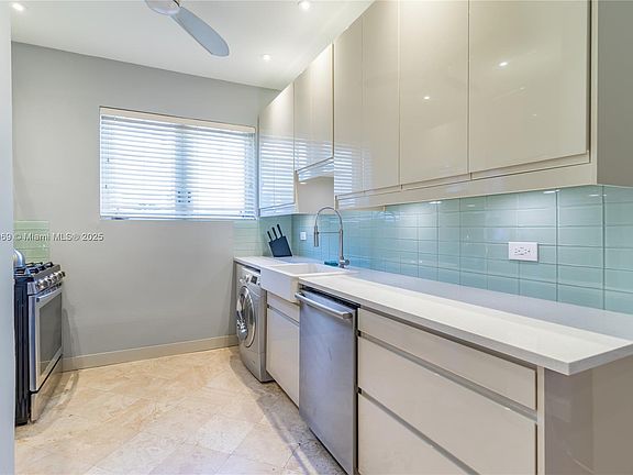 Turnkey! This charming Art Deco 2 bedroom has high-end finishes. This top-floor corner unit is a short stroll from the beach & is beautifully renovated. Everything has been thought of, including a European washer/dryer and a new AC. There is a chef’s kitchen, 5-burner gas stove, Bosch dishwasher, built-in microwave, large farm sink, glass subway tile, all new appliances & stone countertop. There is a separate dining area that seats 6. Both bedrooms fit queen beds & have attached bathrooms. The southern light streams through high-impact windows. Just steps to Flamingo Park, with its swimming pool, tennis courts, gym, running track, racquetball, & children's section. Move right in.