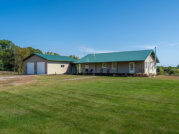 Nestled on five peaceful acres, this dream country property epitomizes quality and custom craftsmanship. With a bright and open layout, the home boasts three spacious bedrooms and three bathrooms. The large lower-level family room features a walkout to a charming patio, perfect for entertaining or relaxing. Enjoy serene evenings watching the sunset from the welcoming front porch and greet your mornings with coffee on the deck off the dining area, also ideal for grilling. This home is loaded with storage along with a 25x31 detached garage and 32x26 pole shed ready for your toys or animals! Located just a few miles from numerous lakes, trails (across the street from Ice Age Trail), and parks this property offers abundant recreational opportunities. Conveniently situated within 25 minutes of both Balsam Lake/Cumberland and 15 minutes of Luck, WI, this home is the perfect blend of tranquility and accessibility only a few miles off of Highway 48. **Per seller: Home is efficient/well insulated-ICFs & Andersen Windows/Patio Doors, fiber to home already set up through Lakeland Communications and appraised for 410k Fall of 2024. Heating includes forced air, wood stove on main level and in-floor heat in lower level!**