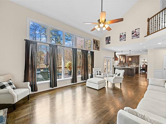 Welcome to this magnificent single-family residence within the prestigious Lansdowne community, perfectly tailored for those seeking a spacious place to call home. This splendid property sits on a generous .49-acre lot with a creek winding through the back and is located in the prestigious North Gwinnett school district. This spacious 5-bedroom, 3-bathroom home spans 4,192 square feet across three levels. Step inside to discover an interior that is perfect for entertaining with its open-concept living area that is bathed in natural light from the updated windows, framing the serene views of mature trees and an open back yard. The kitchen is a chef's dream, boasting high-end appliances, stone countertops, and abundant cabinetry. The large dining area flows to a flex space for an office or sitting room. Another flex space for a private office, sitting room, or even a main-level bedroom. Upstairs, you find spacious secondary bedrooms complete with oversized closets. The primary oversized bedroom flows to the bathroom with a walk-in tiled shower, tiled surround soaking tub, and true double vanities, along with a walk-in closet. The finished terrace level provides versatility and would be perfect for entertaining or for in-laws, featuring a kitchenette, dining area, living area, and a current media room that would be an ideal 6th bedroom. Outside, you will find a very spacious double deck overlooking the park-like backyard with a creek. The current owner had professionally removed trees, so a level grassed yard is perfect for play! You can even take the bridge over the creek to the more privately wooded section of the lot. Come see this one today!