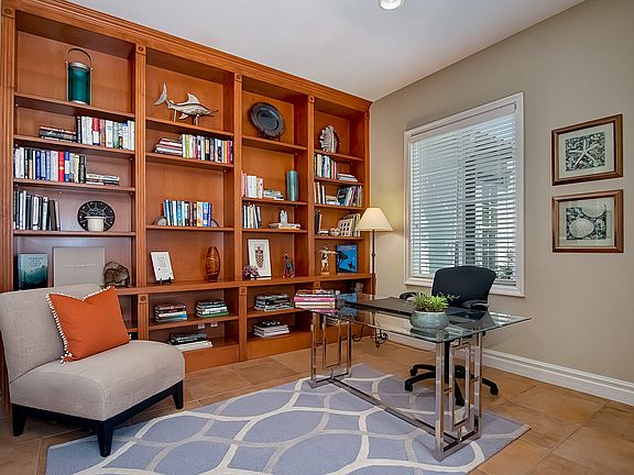 Just a half mile from the beach, this exceptional, highly energy efficient, luxury Spanish-style home has been customized to perfection with all the modern essentials. Located in the exclusive neighborhood of Maravu, this unique and special community was designed with the environment and energy savings in mind. Whole house solar, water efficient recirculating pump, tankless water heater and dual glazed windows. Private tropical paradise with sparkling swimming pool, large spa and waterfall feature affords a quintessential resort lifestyle setting perfect for many alfresco gatherings. Outdoor kitchen has built-in BBQ, refrigerator, gas cooktop, sink and bar seating shaded by a palapa. Large side yard makes perfect dog run or garden area. A lushly landscaped exterior and rotunda entryway greet you as you travel inside through a customized solid wood arched door to a home of timeless coastal elegance. Accentuating architectural touches such as high ceilings, crown molding, 8" baseboards and wood cased windows throughout give this home a refined light and open feel. 4th bedroom with beautiful custom built-ins is currently being used as a library with no closet, but can be converted back to a bedroom. State-of-the-art gourmet kitchen features designer touches with custom sea foam granite countertops, built-in top of the line GE Monogram refrigerator, microwave/convection oven duo, double stacked oven, walk-in pantry, center island bar seating, 6-burner cooktop with griddle and pot filler. The kitchen opens into a separate breakfast nook area and into the family room, with built-in surround sound system and wood-burning gas fireplace. A formal dining room offers great flow for entertaining through the French doors from the dining room to a cozy outdoor courtyard. Courtyard also leads to a private casita with sink area that could be used as an office, gym, craft room, etc. The master suite is reserved entirely for your privacy and French doors open to the backyard tropical sanctuary offering a picture-perfect backdrop for your serene retreat. Coffered ceiling, crown molding and en suite Master bath complete with large, walk-in shower, soaking tub, vanity area & two separate large walk-in closets offer refined accommodations. Top rated Encinitas School District. Convenient access to freeway and beaches.