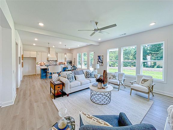 Live Beautifully in Ashbury Commons! Welcome to 735 Crest Line Trail, a stunning move-in ready Chatham “A” with Generational Suite plan by Windsong Properties located in the sought-after Ashbury Commons community in Powder Springs. This thoughtfully designed 5-bedroom, 4.5-bath home features over 3,300 square feet of luxurious living space, including a main-level generational suite with a private sitting room—perfect for guests or extended family. Step into a light-filled open floor plan with 10' ceilings, a gourmet kitchen with soft-close Prescott cabinetry, quartz countertops, and a walk-in pantry that opens seamlessly to the dining and great room with a designer fireplace. Upstairs, retreat to the spacious primary suite with a freestanding tub, oversized shower, and walk-in closet. Every bath is outfitted with premium tile and matte black Moen fixtures. Enjoy outdoor living on your covered patio, and take advantage of the oversized 3-car garage, LVP flooring, stunning lighting, and elegant architectural detailing throughout. LIMITED-TIME INCENTIVE: Get up to $15,000 in Flex Cash when you purchase and apply it toward design upgrades, closing costs, interest rate buy-downs, or a price reduction—your choice (with preferred lender). Community Highlights: Boutique neighborhood in West Cobb Award-winning schools Easy access to shopping, dining, and parks Homes from the high $600s Contact us today to schedule your private tour or virtual showing. This home won't last!