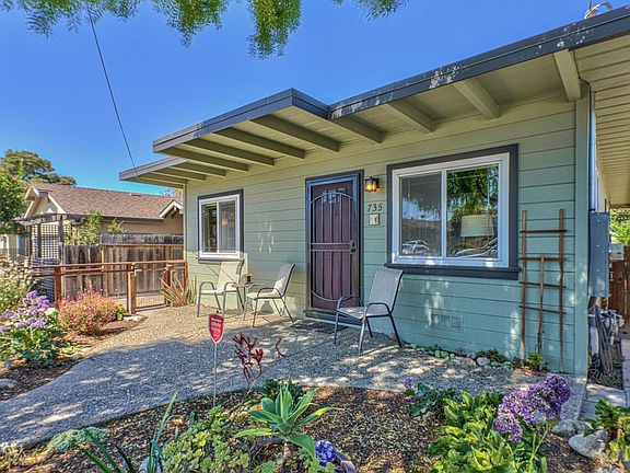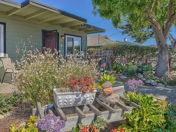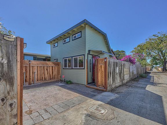 Not a drive-by/has everything. 1,143 sq ft 2 bed/1.5 ba 1948 Eichler inspired Mid Century Modern home. Approx 400 sq ft family rm w/wet bar & gas burning fireplace (stove) & views of flower garden in backyard . Double pane windows w/high end shades, & hardwood flooring throughout. Separate living rm front of house. Open wood beam ceilings living rm, kitchen, bedrms & bath. Upated kitchen, w/corian countertops, nice appliances & cherry wood cabinetry. Well planned flow of bedrms & bathrms. Lots of skylights. Primary bedrm w/ceiling fan. Separate laundry rm & 1 car garage. Fenced front & back. WAIT THERE IS MORE! Newer 216 sq ft ADU comes furnished w/upgrades. Quartz kitchen counters/full bathrm/tankless water heater/combo W/D. Loft w/high ceilings. Own alley back entrance/w parking space/fenced in patio & locked gate. Rents for $2,100 a mo - Great to help w/mortgage. Walking distance shops & restaurants + Getting your toes in sand/ocean less than 10 min drive. Won't last.