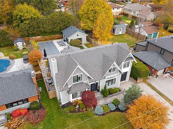 Stunning custom home on a 63' x 136' lot in downtown Burlington. Professionally landscaped yard with heated pool and detached year-round living space, ideal as a nanny suite, office, or guest house—includes kitchenette, 3-pc bath, and cozy lounge. Inside features coffered ceilings, 8" hand-scribed hardwood, custom millwork, and gourmet kitchen with quartz counters, bold blue island, premium appliances, and coffee bar. French doors open to a covered deck with sunken hot tub. Family room with wood-burning fireplace. Luxurious primary suite with spa-like ensuite and custom dressing room. Three additional bedrooms and stylish 4-pc bath upstairs. Finished lower level with rec room, 2-pc bath, and laundry/wet bar with granite and full-size fridge.