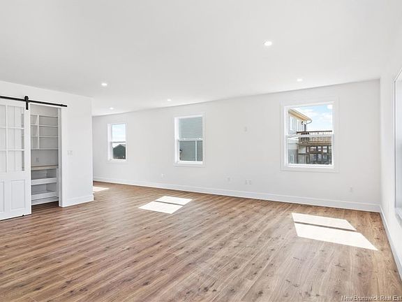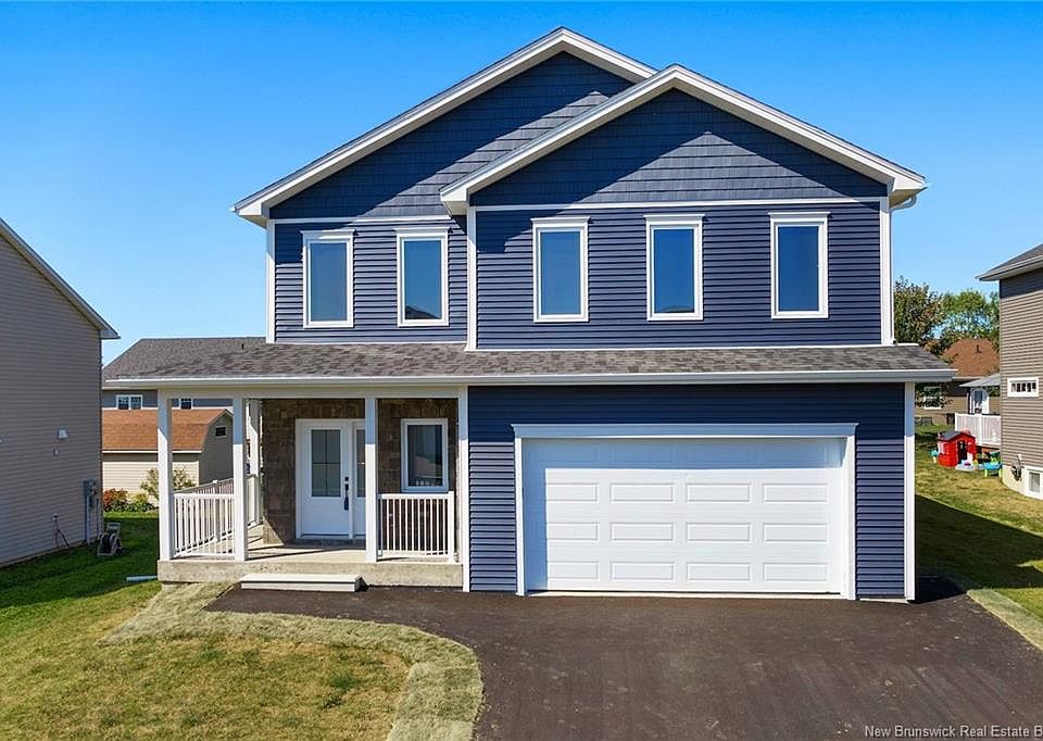 Welcome to this stunning 2-storey home featuring a beautiful stone façade, a charming wrap-around front porch, w/double garage. Step into a spacious front foyer with a walk-in closet & a convenient half bath. The open-concept main level is filled with natural light, with expansive windows along the dining & living area. The chef’s dream kitchen boasts a pearl black granite double apron sink, off white cabinetry with upper glass panels, a large island, & Walk-in pantry with glass barn door. Beautiful quartz countertops and subway tile backsplash. Main floor offers 9 foot ceilings, high-end laminate & vinyl click flooring in bathrooms & a beautiful hardwood staircase. The primary bedrm offers a spacious custom walk-in closet & a luxurious ensuite, vanity has quartz countertops w/double black rectangular sinks, a tiled walk-in shower with 3 shower heads, glass doors, & a freestanding tub. 3 other bedrooms offer a walk-in closet in 2 rooms & the 4th bedrm has a double closet with double shelves. A full bath, dual linen closets, and upstairs laundry with a sink complete the upper level. Basement offers tons of space for an in-law suite or extra rooms for more family living space. Equipped with a forced air furnace & heat pump, this home is in a desirable family-friendly neighborhood on Fredericton’s Northside. Close to all amenities. Paved driveway & Landscaping included. This home is a pleasure to show.