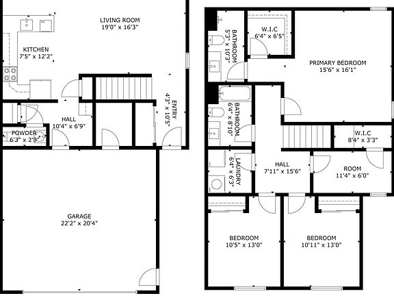 *Second floor has three bedrooms plus BONUS office/nursery with closet, 2 full baths