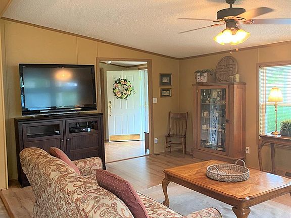 Country living and still close to town. Spacious manufactured home sitting on 2.36 Acres. Three bedrooms, two full baths, great room, family room w/ventless gas (propane) fireplace, nice size kitchen w/island & dining area. Stainless steel kitchen appliances. Big deck off the kitchen. Central vacuum throughout. Two car detached garage w/work shop. Work shop area is heated. Storage building. Covered front porch. Shared driveway w/easement. Selling as-is but inspections welcomed.
