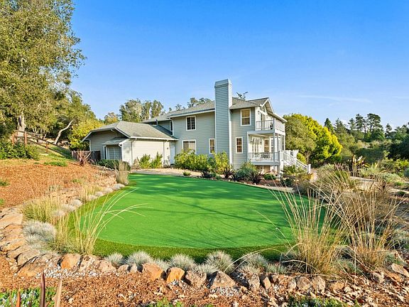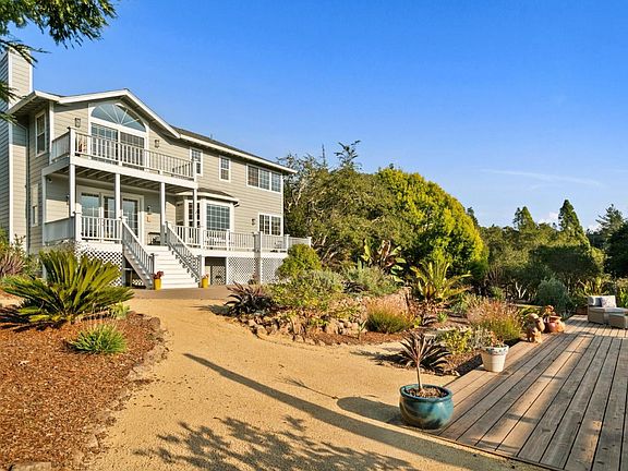 Nestled in the highly desirable Forest & Meadows neighborhood set on nearly 2 mostly usable acres near the top of the community, the property boasts breathtaking valley & ocean views. Enjoy the tranquility of country living while still being just minutes away from the beach & the Aptos Village. This home's flexible floor plan is thoughtfully designed to suit a variety of lifestyles. Upon entering, you'll find a welcoming living room featuring soaring ceilings & a cozy fireplace. Adjacent is a versatile space that can serve as a formal dining room or a home office. The kitchen has a large island offering plenty of counter & storage space that seamlessly connects to a dining area & family room which also includes a fireplace. A ground-floor bedroom provides excellent options for an office, playroom, or guest accommodations. Upstairs, you'll discover 4 additional bedrooms, including a spacious primary suite. This retreat features a sitting area, a private balcony with stunning ocean views, & an en-suite bathroom. Step outside to bask in the sunshine on the back porch, unwind in the generously sized swim spa, or perfect your golf skills on your private putting green. A 3-car garage with an attached finished bonus space offers ample parking & potential for an ADU or a workshop.