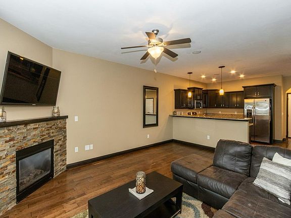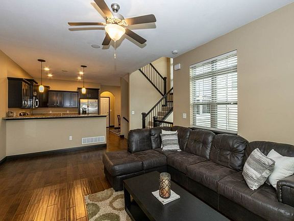 Beautiful 4 bedroom, 3.5 bath, end unit, townhouse style condo. Main floor features: a large kitchen with all granite counters, granite breakfast counter, and stainless steel appliances; 1/2 bath; dining room; and a family room. Wood floors in the living room, dining room and kitchen. The master, two bedrooms, and laundry are on the second floor. The master features two sinks, granite counter tops, a tiled shower, and a walk in closet. The lower levels features the 4th bedroom, full bath, and family room.