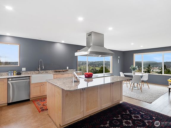 Welcome to panoramic views from the West side of Morgan Hill - from the San Juan Islands, past the Olympic Mountains, down to Port Townsend Bay. The almost-complete comprehensive remodel of the 4 bd/2 ba home includes: a new kitchen, upgraded appliances, remodeled upstairs bathroom, new carpets/cork flooring/marmoleum, remodeled downstairs living room, remodeled office, downstairs radiant heating, new windows with reclaimed old Douglas trim, can lights, new foundation on lower level stem walls, new upper deck with reclaimed teak custom railing, new roof/fascia/gutters, new siding/almost complete, new steel beamed cantilevered deck, new upgraded electrical panel and subpanel for EV charger. Steps away from Chetzemoka, Farmer's Mkt. & Uptown.