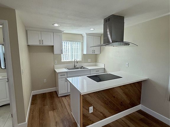 Designer kitchenDedicated private entranceCustom cabinetrySleek quartz countertopsStunning electric stove islandSmall outdoor patio area