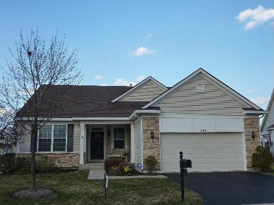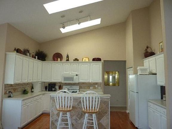 Beautiful ranch home with a very sharp floor plan, including a sunroom and brick paver patio! Breathtaking views of the pond, the lighted fountain near the clubhouse! Newer hardwood floor in light & bright kitchen with skylights, travertine back splash, pull out drawers in cabinets and newer dishwasher. Master suite has an extra skylight too! Unfinished basement has a large walk in closet! A true 10++