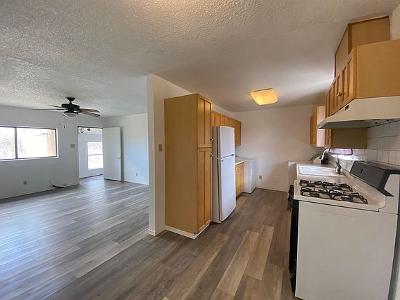 Just a short distance from the Plaza, this home is affordable and has built-in passive income! Great for investors, first time home buyers or multiple families, this 1248sf home on .28 lush acres could be easily returned to a single family 3 bed/2 bad or remain in its current configuration as two separate units. Unit A is a 2 bed/1 bath space that has a lovely sun room, which could be used for another bedroom or a meditation room, or for exercising, growing plants or just a sweet space to hang out. The floors have been updated, as well as the kitchen and bathroom. There is a gas stove, ceiling fans and a washer and dryer. Unit 2 is a 1 bed/1bath space with a bright living room, new tile in the kitchenette and bathroom. Both units share a large grassy fenced yard and great views. Close to shopping, dining, and entertainment, this cozy home is appropriately priced and available now.
