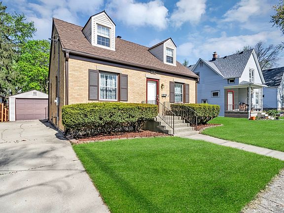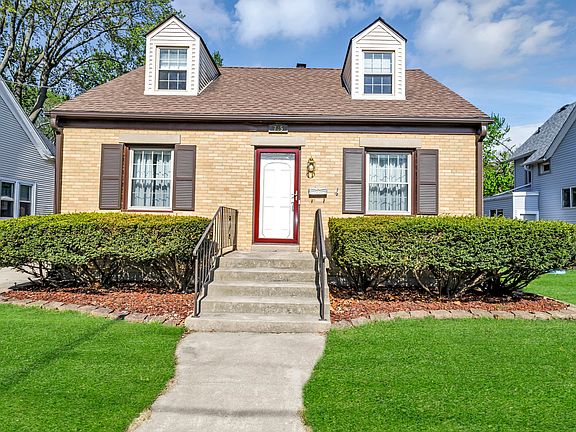 HIGHEST AND BEST OFFERS DUE SUNDAY 5/11 BY 5 pm. Make this beautifully cared-for brick Cape Cod, full of charm, and character yours! Step inside to a spacious and sun-filled living room that welcomes you with warmth and comfort. The formal dining room features elegant built-in china cabinets-perfect for displaying your favorite pieces-and offers a timeless setting for gatherings and special occasions. The kitchen is functional and inviting, equipped with a range and refrigerator, and offers easy flow when cooking. The full first-floor bathroom has been tastefully appointed with a step-in shower, a classic pedestal sink, and built-in cabinetry that adds both charm and storage. Upstairs, you'll find two cozy bedrooms featuring hardwood floors, charming dormer windows, and just the right amount of tucked-away storage space. The basement is clean, spacious, and practical, offering ample room for storage, hobbies, or future finishing possibilities. It also includes a washer and dryer and provides convenient access from both inside the home and a separate exterior entrance. Step outside to discover a meticulously landscaped yard with lush greenery and a custom paver patio-perfect for summer barbecues, morning coffee, or evening relaxation. The extra-deep detached garage adds incredible value and versatility, while the concrete driveway and alley-access parking pad offer off-street parking for 5-6 vehicles between the two - an uncommon bonus in this style of home!